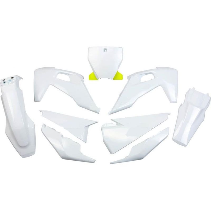 Le kit plastique UFO est composé de:2 plaques latérales1 garde-boue avant1 garde-boue arrière1 plaque frontale2 ouïes de radiateursCouleur blanc