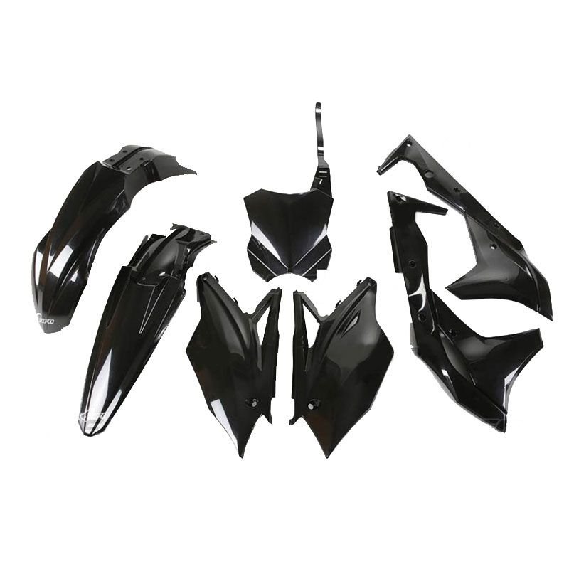 Le kit plastique UFO est composé de:2 plaques latérales1 garde-boue avant1 garde-boue arrière1 plaque frontale2 ouïes de radiateursCouleur noir