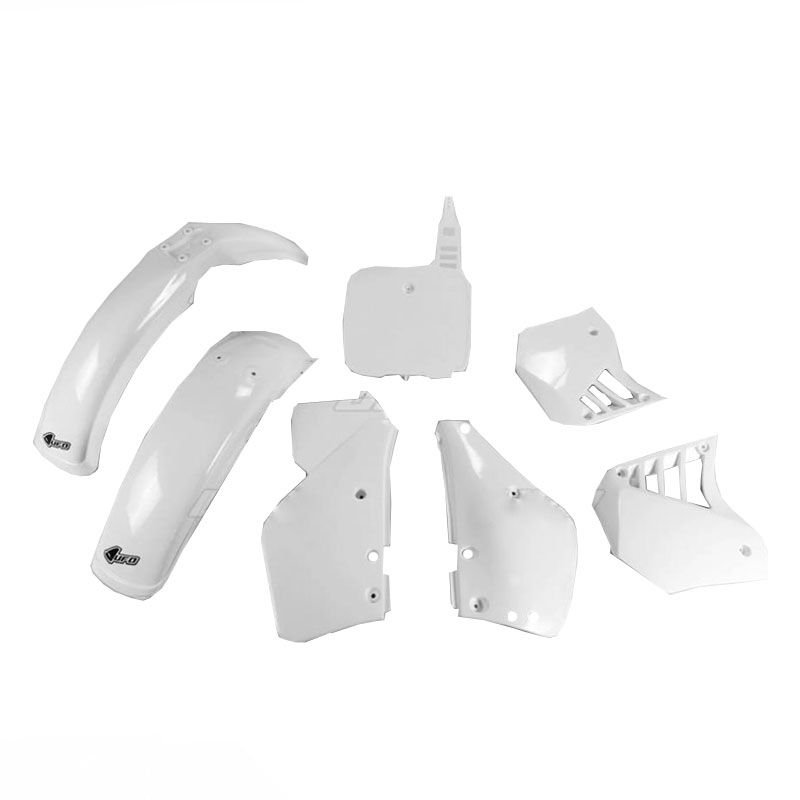 Kit plastiques Ufo VINTAGE: Présentation: Les plastiques UFO sont mondialement réputés pour leur qualité de fabrication et leur résistance aux sollicitations liées à la pratique du tout-terrain. Ils reprennent les cotes de la première monte et se montent facilement sur les points de fixations existants. Composition du pack: Garde-boue avant Garde-boue arrière Ouïes de radiateur Plaques numéro latérales Plaque numéro frontale Type origine Identique aux plastiques utilisés en MXGP Plastique injecté résistant aux UV, aux chocs et aux torsions