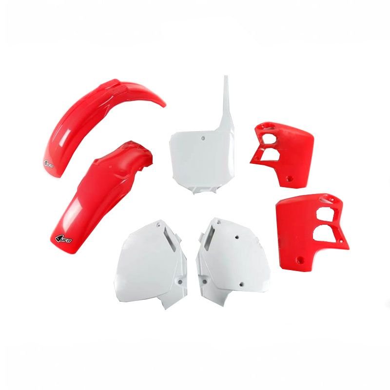 Kit plastiques Ufo VINTAGE ORIGINE 2000: Présentation: Les plastiques UFO sont mondialement réputés pour leur qualité de fabrication et leur résistance aux sollicitations liées à la pratique du tout-terrain. Ils reprennent les cotes de la première monte et se montent facilement sur les points de fixations existants. Composition du pack: Garde-boue avant Garde-boue arrière Ouïes de radiateur Plaques numéro latérales Plaque numéro frontale Type origine Identique aux plastiques utilisés en MXGP Plastique injecté résistant aux UV, aux chocs et aux torsions