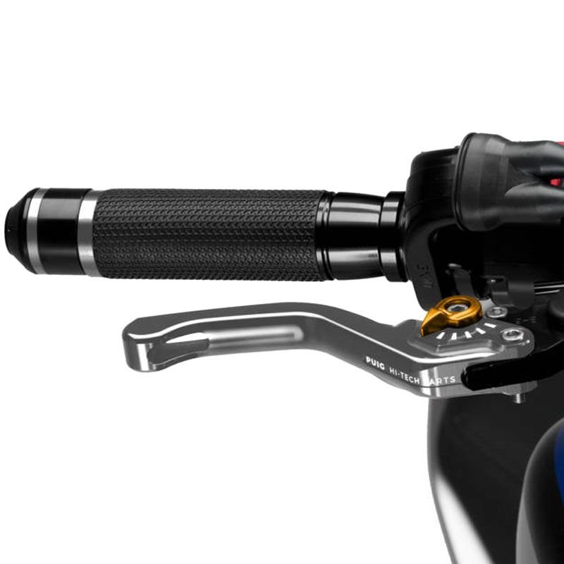 Puig vous présente le levier de frein court 3.0: Evolution de la version 2.0, Puig a mis l’accent sur l’amélioration ergonomique de la pièce et le renouvellement esthétique des leviers pour apporter une touche moderne et agressive à la moto.La nouvelle forme des leviers permet une adaptation parfaite de la pièce à votre main, ce qui garantira une meilleure adhérence et une plus grande accessibilité à la conduite.En ce qui concerne l?amélioration esthétique, Puig a renouvelé tous les graphiques inclus dans la pièce en les adaptant aux temps nouveaux.Les leviers PUIG 3.0 sont disponibles en 4 modèles: court, fixe, rabattable et rabattable extensible.Les leviers Puig 3.0 ont le certificat TÜV et sont homologués par l’organisme Allemand ABE 9129.Caractéristiques:Meilleure ergonomie, leur profil a été modifié sur la zone d?appui des doigts pour une utilisation optimaleCouleur du levier de frein: ArgentCouleur de la molette: 7 coloris au choix (selon la disponibilité)Type courtHomologué Tûv et ABE 9129Longueur: 129 mm