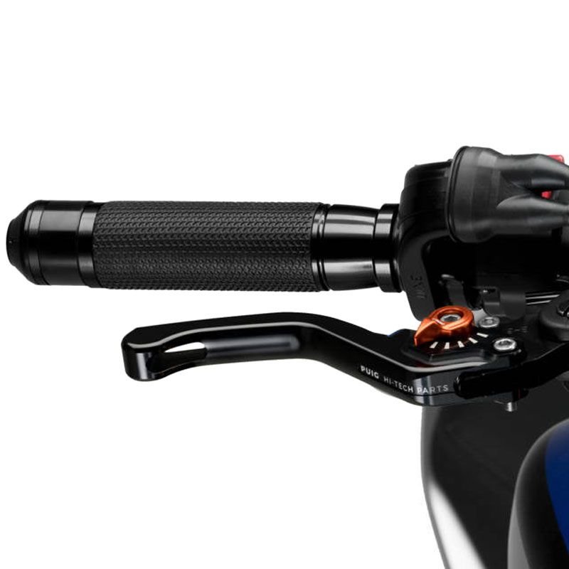 Puig vous présente le levier de frein court 3.0: Evolution de la version 2.0, Puig a mis l’accent sur l’amélioration ergonomique de la pièce et le renouvellement esthétique des leviers pour apporter une touche moderne et agressive à la moto.La nouvelle forme des leviers permet une adaptation parfaite de la pièce à votre main, ce qui garantira une meilleure adhérence et une plus grande accessibilité à la conduite.En ce qui concerne l?amélioration esthétique, Puig a renouvelé tous les graphiques inclus dans la pièce en les adaptant aux temps nouveaux.Les leviers PUIG 3.0 sont disponibles en 4 modèles: court, fixe, rabattable et rabattable extensible.Les leviers Puig 3.0 ont le certificat TÜV et sont homologués par l’organisme Allemand ABE 9129.Caractéristiques:Meilleure ergonomie, leur profil a été modifié sur la zone d?appui des doigts pour une utilisation optimaleCouleur du levier de frein: NoirCouleur de la molette: 7 coloris au choix (selon la disponibilité)Type courtHomologué Tûv et ABE 9129Longueur: 129 mm