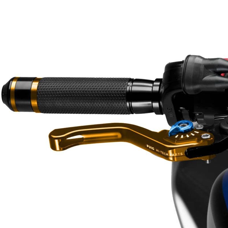 Puig vous présente le levier de frein court 3.0: Evolution de la version 2.0, Puig a mis l’accent sur l’amélioration ergonomique de la pièce et le renouvellement esthétique des leviers pour apporter une touche moderne et agressive à la moto.La nouvelle forme des leviers permet une adaptation parfaite de la pièce à votre main, ce qui garantira une meilleure adhérence et une plus grande accessibilité à la conduite.En ce qui concerne l?amélioration esthétique, Puig a renouvelé tous les graphiques inclus dans la pièce en les adaptant aux temps nouveaux.Les leviers PUIG 3.0 sont disponibles en 4 modèles: court, fixe, rabattable et rabattable extensible.Les leviers Puig 3.0 ont le certificat TÜV et sont homologués par l’organisme Allemand ABE 9129.Caractéristiques:Meilleure ergonomie, leur profil a été modifié sur la zone d?appui des doigts pour une utilisation optimaleCouleur du levier de frein: OrCouleur de la molette: 7 coloris au choix (selon la disponibilité)Type courtHomologué Tûv et ABE 9129Longueur: 129 mm