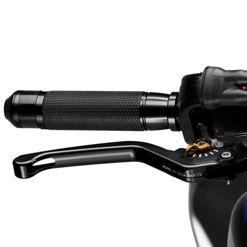 Puig vous présente le levier de frein fixe 3.0: Evolution de la version 2.0, Puig a mis l’accent sur l’amélioration ergonomique de la pièce et le renouvellement esthétique des leviers pour apporter une touche moderne et agressive à la moto.La nouvelle forme des leviers permet une adaptation parfaite de la pièce à votre main, ce qui garantira une meilleure adhérence et une plus grande accessibilité à la conduite.En ce qui concerne l?amélioration esthétique, Puig a renouvelé tous les graphiques inclus dans la pièce en les adaptant aux temps nouveaux.Les leviers PUIG 3.0 sont disponibles en 4 modèles: court, fixe, rabattable et rabattable extensible.Les leviers Puig 3.0 ont le certificat TÜV et sont homologués par l’organisme Allemand ABE 9129.Caractéristiques:Meilleure ergonomie, leur profil a été modifié sur la zone d?appui des doigts pour une utilisation optimaleCouleur du levier de frein: NoirCouleur de la molette: 7 coloris au choix (selon la disponibilité)Type FixeHomologué Tûv et ABE 9129Longueur: 160 mmAttention: adaptateur vendu séparément
