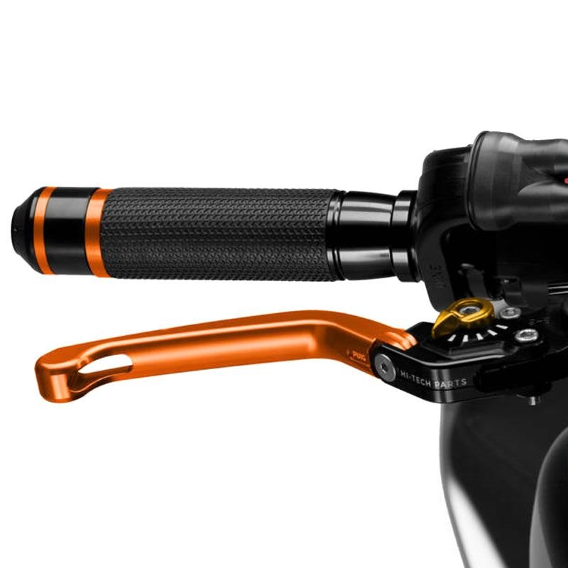 Puig vous présente le levier de frein rabattable 3.0: Evolution de la version 2.0, Puig a mis l’accent sur l’amélioration ergonomique de la pièce et le renouvellement esthétique des leviers pour apporter une touche moderne et agressive à la moto.La nouvelle forme des leviers permet une adaptation parfaite de la pièce à votre main, ce qui garantira une meilleure adhérence et une plus grande accessibilité à la conduite.En ce qui concerne l?amélioration esthétique, Puig a renouvelé tous les graphiques inclus dans la pièce en les adaptant aux temps nouveaux.Les leviers PUIG 3.0 sont disponibles en 4 modèles: court, fixe, rabattable et rabattable extensible.Les leviers Puig 3.0 ont le certificat TÜV et sont homologués par l’organisme Allemand ABE 9129.Caractéristiques:Meilleure ergonomie, leur profil a été modifié sur la zone d?appui des doigts pour une utilisation optimaleCouleur du levier de frein: OrangeCouleur de la molette: 7 coloris au choix (selon la disponibilité)Type RabattableHomologué Tûv et ABE 9129Longueur: 160 mm