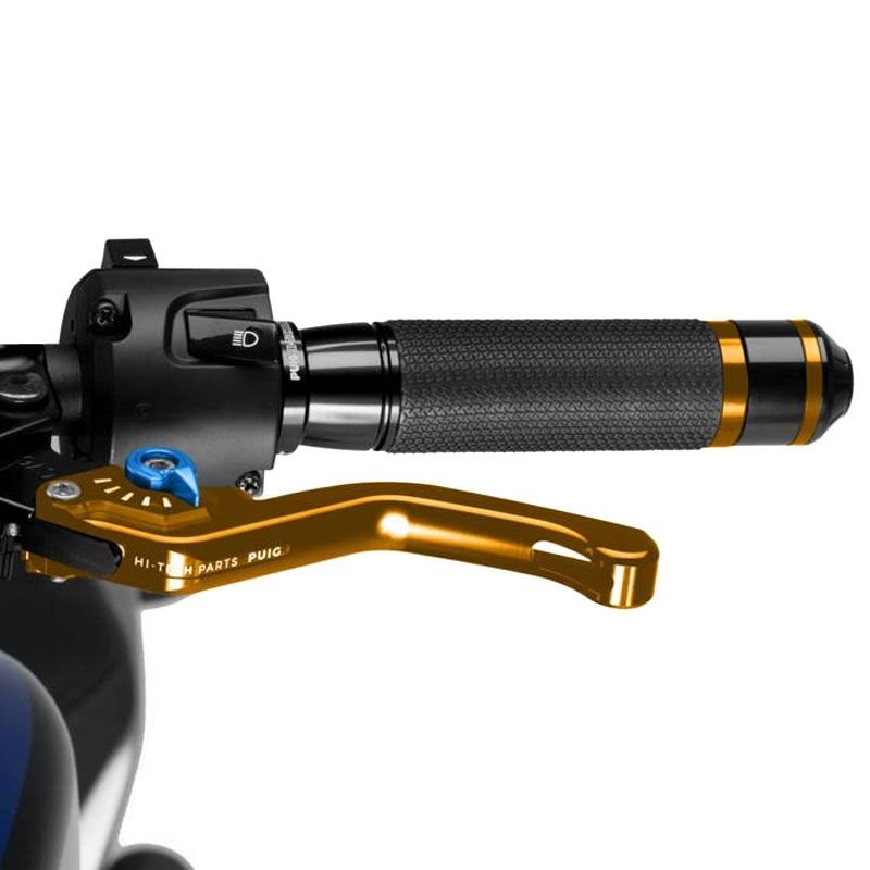 Puig vous présente le levier d?embrayage court 3.0: Evolution de la version 2.0, Puig a mis l’accent sur l’amélioration ergonomique de la pièce et le renouvellement esthétique des leviers pour apporter une touche moderne et agressive à la moto.La nouvelle forme des leviers permet une adaptation parfaite de la pièce à votre main, ce qui garantira une meilleure adhérence et une plus grande accessibilité à la conduite.En ce qui concerne l?amélioration esthétique, Puig a renouvelé tous les graphiques inclus dans la pièce en les adaptant aux temps nouveaux.Les leviers PUIG 3.0 sont disponibles en 4 modèles: court, fixe, rabattable et rabattable extensible.Les leviers Puig 3.0 ont le certificat TÜV et sont homologués par l’organisme Allemand ABE 9129.Caractéristiques:Meilleure ergonomie, leur profil a été modifié sur la zone d?appui des doigts pour une utilisation optimaleCouleur du levier de frein: OrCouleur de la molette: 7 coloris au choix (selon la disponibilité)Type courtHomologué Tûv et ABE 9129Longueur: 129 mmPour le montage de ces derniers, les leviers sont livrés avec des instructions détaillées et ne nécessitent aucune modification de la moto. Si vous achetez un ensemble de leviers pour la première fois, vous devez également acheter les adaptateurs spécifiques à votre moto, car les leviers Puig ne montent pas avec les cocottes d’origine.