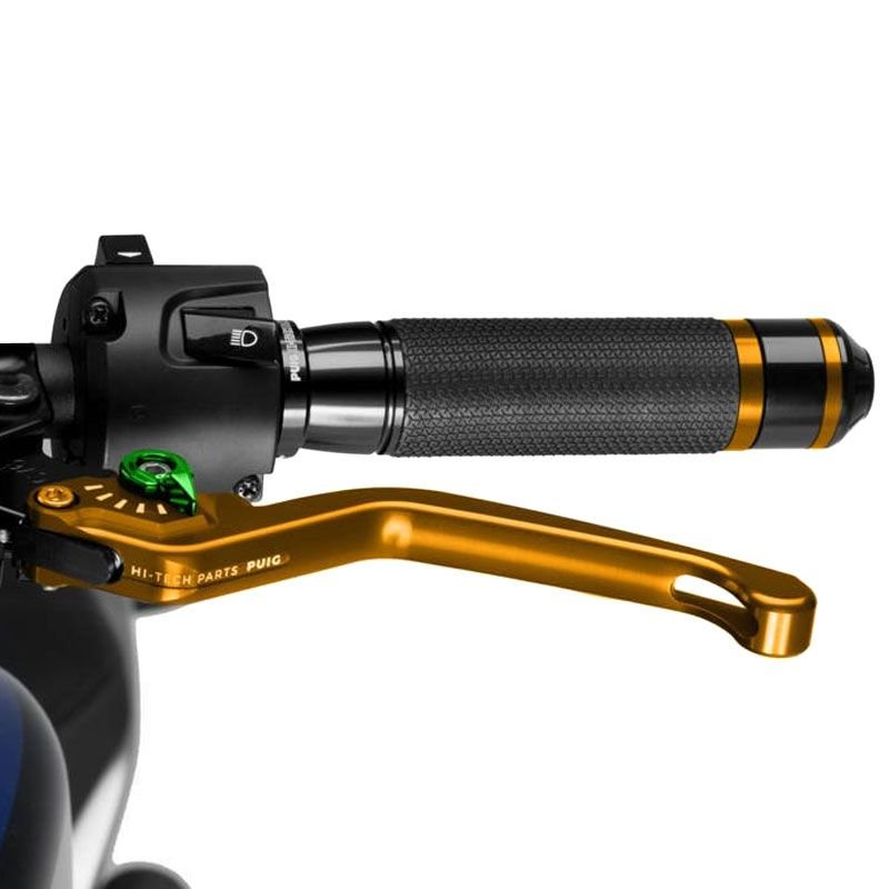 Puig vous présente le levier d?embrayage fixe 3.0: Evolution de la version 2.0, Puig a mis l’accent sur l’amélioration ergonomique de la pièce et le renouvellement esthétique des leviers pour apporter une touche moderne et agressive à la moto.La nouvelle forme des leviers permet une adaptation parfaite de la pièce à votre main, ce qui garantira une meilleure adhérence et une plus grande accessibilité à la conduite.En ce qui concerne l?amélioration esthétique, Puig a renouvelé tous les graphiques inclus dans la pièce en les adaptant aux temps nouveaux.Les leviers PUIG 3.0 sont disponibles en 4 modèles: court, fixe, rabattable et rabattable extensible.Les leviers Puig 3.0 ont le certificat TÜV et sont homologués par l’organisme Allemand ABE 9129.Caractéristiques:Meilleure ergonomie, leur profil a été modifié sur la zone d?appui des doigts pour une utilisation optimaleCouleur du levier de frein: OrCouleur de la molette: 7 coloris au choix (selon la disponibilité)Type fixeHomologué Tûv et ABE 9129Longueur: 160 mm