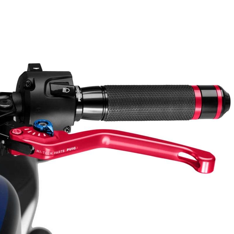 Puig vous présente le levier d?embrayage fixe 3.0: Evolution de la version 2.0, Puig a mis l’accent sur l’amélioration ergonomique de la pièce et le renouvellement esthétique des leviers pour apporter une touche moderne et agressive à la moto.La nouvelle forme des leviers permet une adaptation parfaite de la pièce à votre main, ce qui garantira une meilleure adhérence et une plus grande accessibilité à la conduite.En ce qui concerne l?amélioration esthétique, Puig a renouvelé tous les graphiques inclus dans la pièce en les adaptant aux temps nouveaux.Les leviers PUIG 3.0 sont disponibles en 4 modèles: court, fixe, rabattable et rabattable extensible.Les leviers Puig 3.0 ont le certificat TÜV et sont homologués par l’organisme Allemand ABE 9129.Caractéristiques:Meilleure ergonomie, leur profil a été modifié sur la zone d?appui des doigts pour une utilisation optimaleCouleur du levier de frein: RougeCouleur de la molette: 7 coloris au choix (selon la disponibilité)Type fixeHomologué Tûv et ABE 9129Longueur: 160 mm