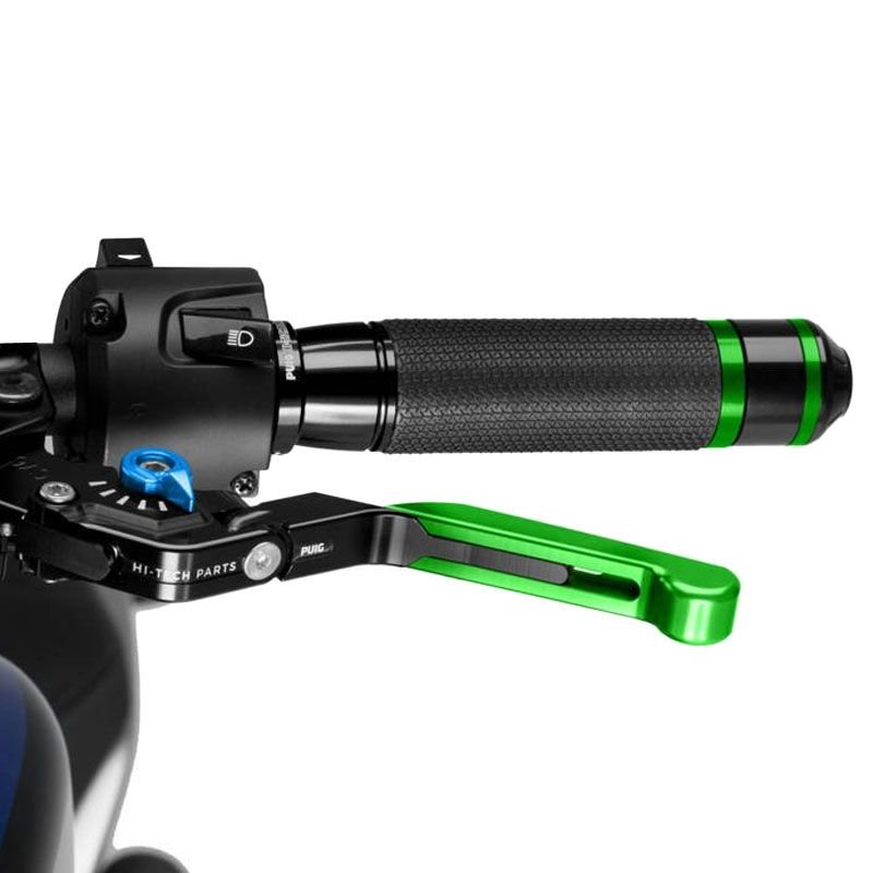 Puig vous présente le levier d?embrayage rabattable extensible 3.0: Evolution de la version 2.0, Puig a mis l’accent sur l’amélioration ergonomique de la pièce et le renouvellement esthétique des leviers pour apporter une touche moderne et agressive à la moto.La nouvelle forme des leviers permet une adaptation parfaite de la pièce à votre main, ce qui garantira une meilleure adhérence et une plus grande accessibilité à la conduite.En ce qui concerne l?amélioration esthétique, Puig a renouvelé tous les graphiques inclus dans la pièce en les adaptant aux temps nouveaux.Les leviers PUIG 3.0 sont disponibles en 4 modèles: court, fixe, rabattable et rabattable extensible.Les leviers Puig 3.0 ont le certificat TÜV et sont homologués par l’organisme Allemand ABE 9129.Caractéristiques:Meilleure ergonomie, leur profil a été modifié sur la zone d?appui des doigts pour une utilisation optimaleCouleur du levier de frein: VertCouleur de la molette: 7 coloris au choix (selon la disponibilité)Type rabattable extensibleHomologué Tûv et ABE 9129Longueur: 133 à 153 mmPour le montage de ces derniers, les leviers sont livrés avec des instructions détaillées et ne nécessitent aucune modification de la moto. Si vous achetez un ensemble de leviers pour la première fois, vous devez également acheter les adaptateurs spécifiques à votre moto, car les leviers Puig ne montent pas avec les cocottes d’origine.