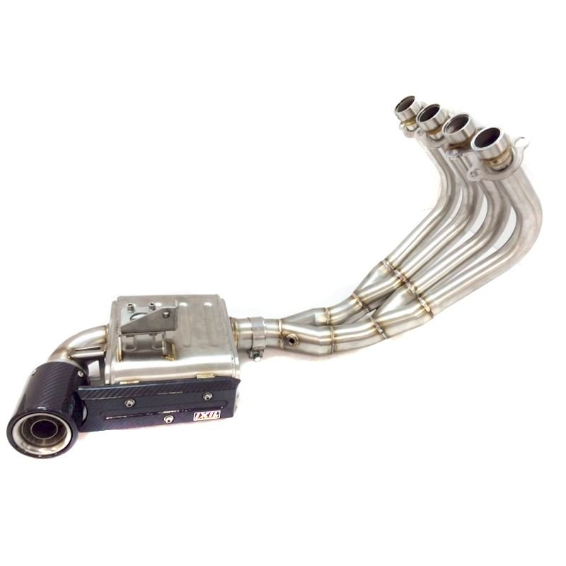 Ligne Complète Ixil SX1 (SUPER XTREM): Caractéristiques: Silencieux fabrique en acier inoxydableCollecteur inclusSoudures TIG haute qualitéEmbouts de sortie en carboneLongueur du silencieux: 347 mmProtecteur en carbonePoids: 3900 grDb killer inclusHomologué CESonorité modulable, son unique