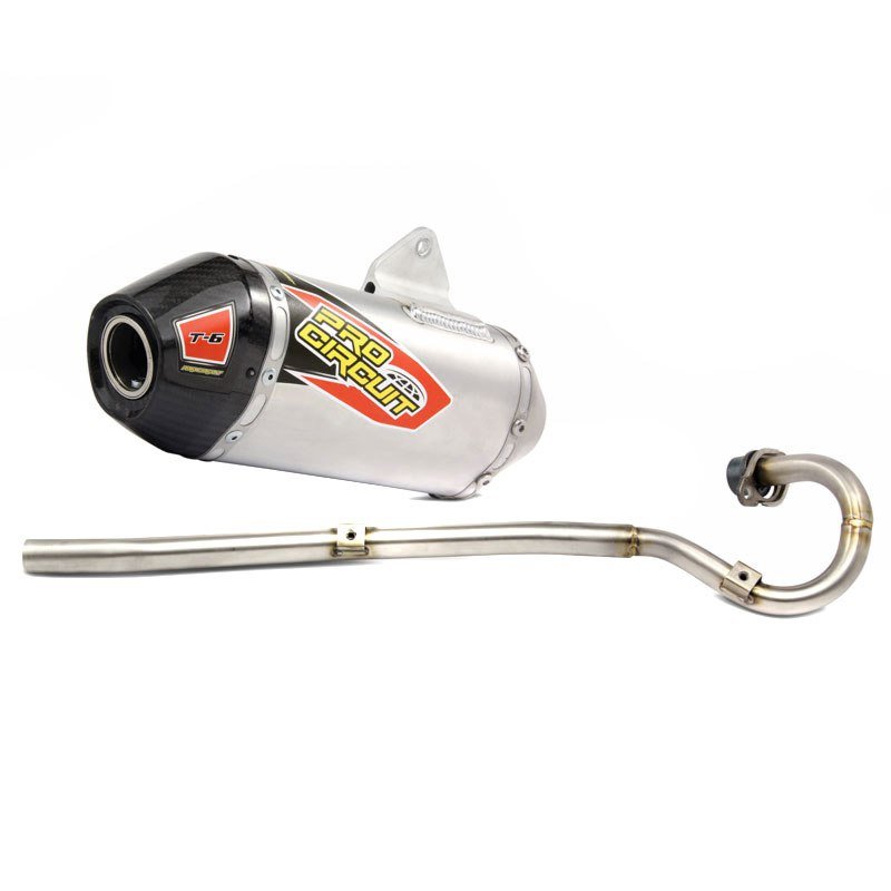 Pro circuit vous présente la ligne complète T-6:Conçus pour améliorer la performance,la puissance et la durabilité de la ligneÉquipé d’un pare étincelle approuvé USFS amovibleLa ligne d’échappement T-6 comprend une construction en acier inoxydable sur l’ensemble du collecteur ou sur le tuyau central en Y( en fonction de la moto), le silencieux est en titaneÉquipé d’une caisse de résonance RC-4 pour réduire la sonoritéSupport du silencieux en aluminium usiné pour une grande solidité et une grande durabilitéConfiguration du silencieux asymétrique pour un volume de garnissage accrueCollecteur central usiné jusqu’au joint du collecteur pour un meilleur ajustement sans fuiteSoudage à l’arc TIG Fabriqué aux États-Unis