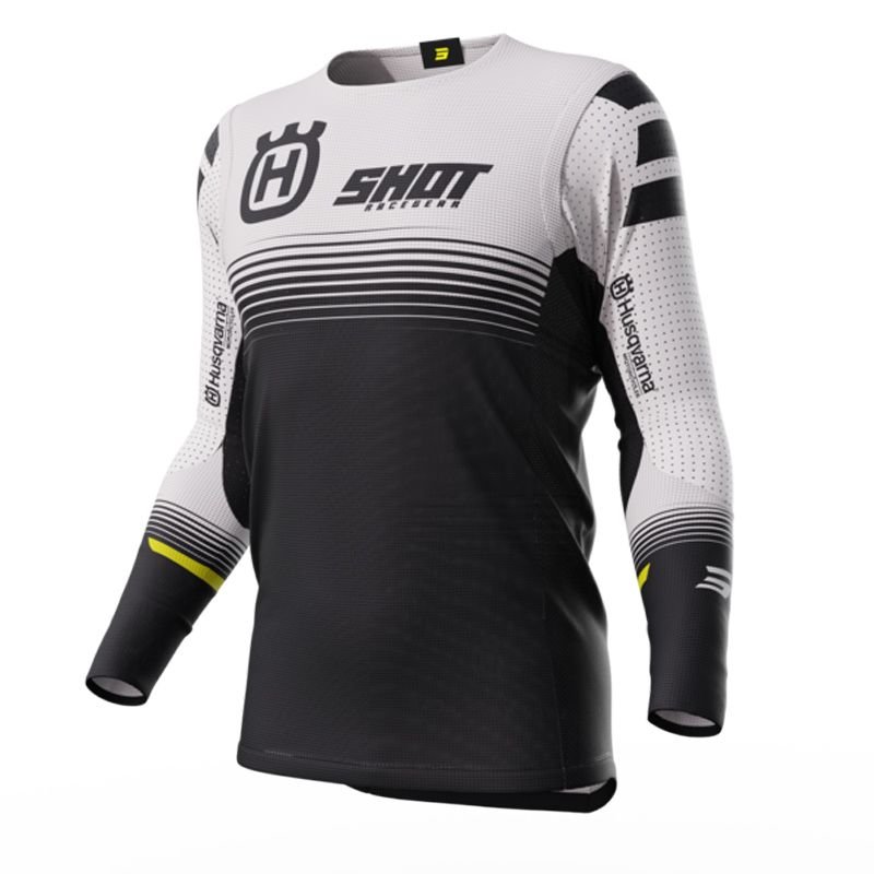 Maillot cross Shot AEROLITE – HUSQVARNA LIMITED EDITION 2023: Matière: En polyester assurant souplesse et légèreté Empiècements Mesh pour un flux d’air optimiséLes « + »: Col finition sport Manches pré-courbées  Signature TPR souple au col Finition ourlet pour plus de confort Bas de dos allongé afin de maintenir le maillot dans le pantalon Couleurs inaltérables Coupe performance ajustée pour plus d’aisance
