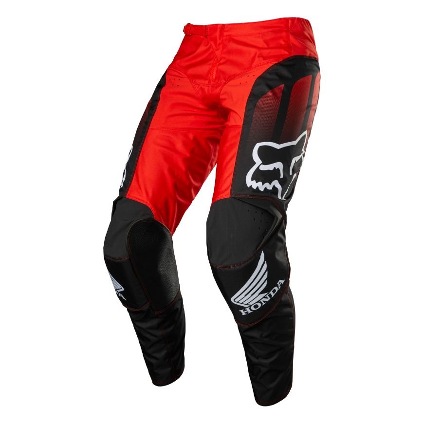 Pantalon cross Fox 180 HONDA – BLACK RED 2023: Présentation: FOX vous propose son pantalon Tout-Terrain adulte le 180HONDA – BLACK RED : Matière: En polyester 600D pour une bonne durabilité et résistance Panneaux de cuir à l’intérieur du genou protégeant contre la chaleur du moteur et résistant à l?abrasion Empiècements tissés en stretch quadri-extensible sur les genoux, à l?arrière et au niveau de l?entrejambe pour une liberté de mouvement optimale Les « + »: Coupe RAP (position de pilotage en attaque) pour un ajustement précis sur la moto Panneaux stretch autour du genou procurant de la flexibilité pour accueillir les genouillères Panneau en stretch à l?arrière du pantalon en-dessous de la taille et à l’entrejambe vous procure un meilleur confort en position de conduite Conception préformée pour un ajustement parfait en position de conduite Motifs premium sérigraphiés