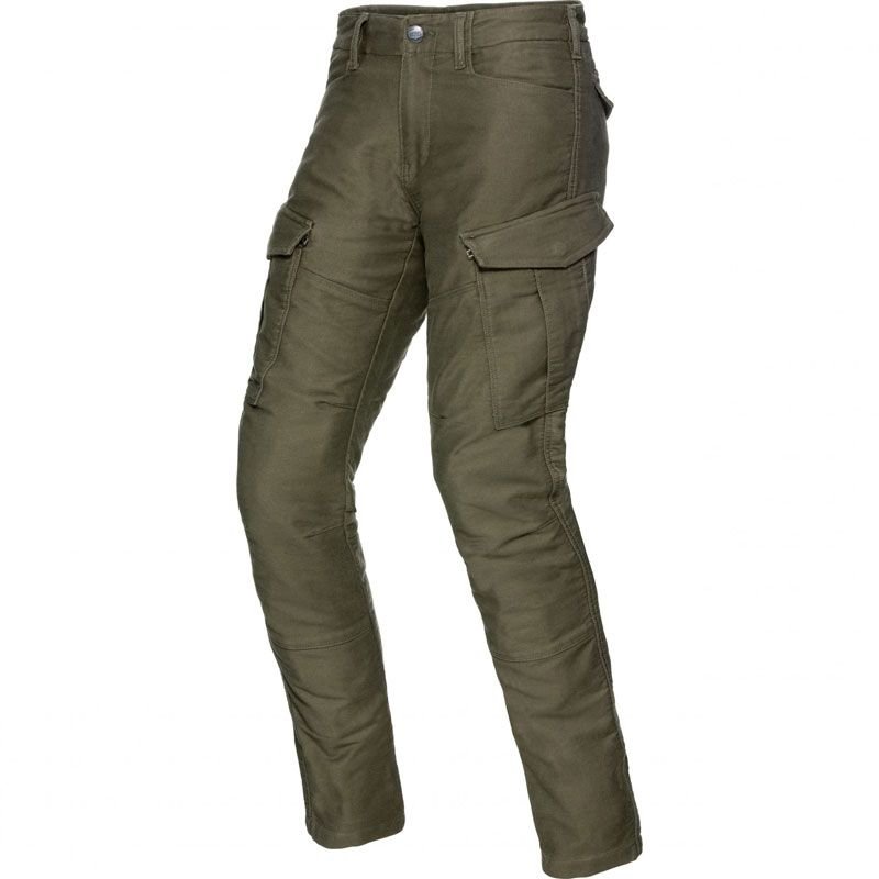 Pantalon Spirit Motors CARGO 1.0: Présentation: SPIRIT MOTORS vous propose son pantalon textile moto homme le CARGO 1.0 : Matière: 92% de coton et 2% d’élasthanne pour sa résistance naturel et son élasticité Renfort en fibres d’Aramides reconnu pour sa haute résistanceDoublure: Doublure Mesh pour une circulation de l’air optimiséeProtections: Protections genoux homologuées CE Prédisposé à recevoir des protections de hancheLes « + »: Fermeture à glissière en métal Passants pour ceinturePoches: 2 poches mains 1 poche ticket 2 poches cuisses zippées 2 poches cuisses 2 poches dos cachées