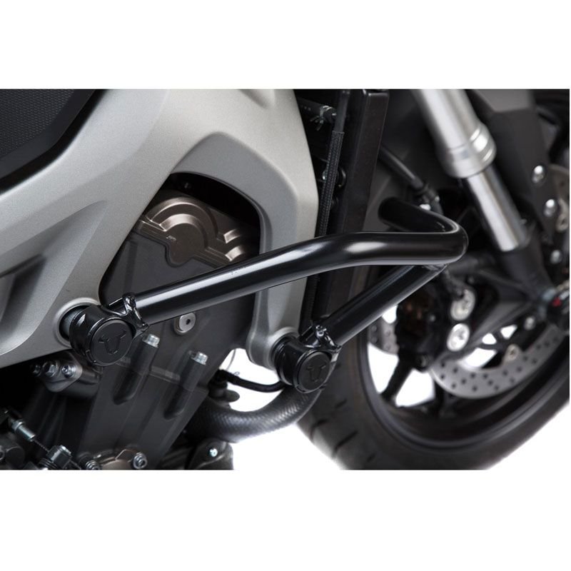 Pare-carter SW-MOTECH crash bar: Présentation: Crashbar SW-MOTECH La meilleure protection en cas de chute ou de collision : le crashbar, dont le diamètre est de 27 millimètres, protège de nombreuses pièces comme le carénage et le réservoir. Cette protection contre les chutes a été développée spécifiquement pour la MT-09 / XSR 900 et s?installe sur les points de fixation du cadre. Ces fixations apportent une grande stabilité au montage et une facilité d?installation car aucune soudure ou perçage ne sont nécessaires. Un revêtement époxy noir protège le crashbar contre la corrosion et les rayures. Caractéristiques: Fixations solides sur les points de montage existants du cadre Diamètre du tube 27 mm Surface laquée époxy noire Fixation sans soudure ni perçageContenu: 2 barres de protection Matériel de montage Notice d?installation