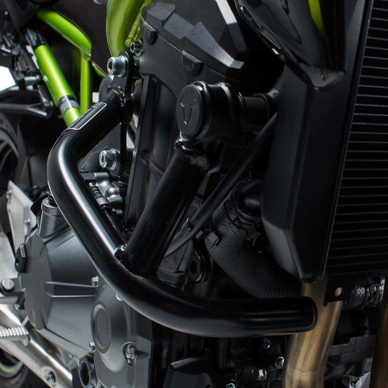 Pare-carter SW-MOTECH crash bar: Présentation: Crashbar SW-MOTECH La meilleure protection en cas de chute ou de collision : le crashbar, dont le diamètre est de 22 millimètres, protège de nombreuses pièces comme le carénage et le réservoir. Cette protection contre les chutes a été développée spécifiquement pour la Kawasaki Z 900 et s?installe sur les points de fixation du cadre. Ces fixations apportent une grande stabilité au montage et une facilité d?installation car aucune soudure ou perçage ne sont nécessaires. Un revêtement époxy noir protège le crashbar contre la corrosion et les rayures. Caractéristiques: Fixations solides sur les points de montage existants du cadre Diamètre du tube 22 mm Surface laquée époxy noire Fixation sans soudure ni perçageContenu: 2 barres de protection Matériel de montage Notice d?installation