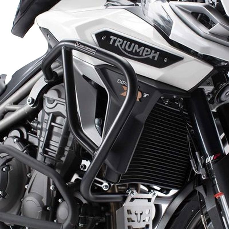 Pare-carter SW-MOTECH crash bar: Présentation: Crashbar pour Triumph Tiger 1215 explorer (15-) Caractéristiques: Fixations solides sur les points de montage existants du cadre Surface laquée époxy noire Fixation sans soudure ni perçageContenu: 2 barres de protection Matériel de montage Notice d?installation