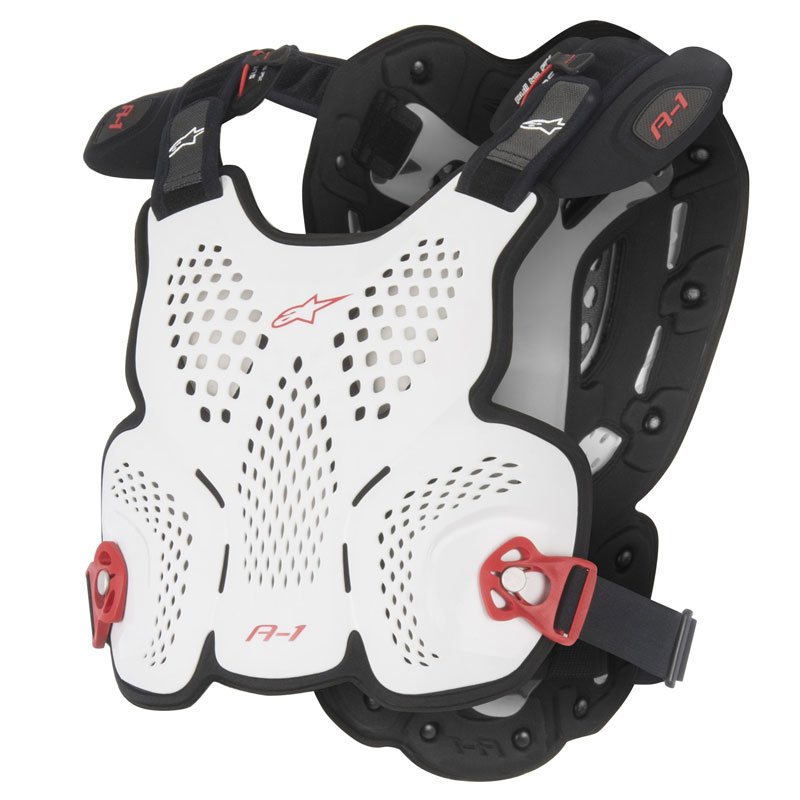 Alpinestars vous présente son plastron A1 :Matière :Coques rigides avant et arrière en mélange poly-matière performant pour une flexibilité optimisée et une excellente réduction du poidsProtections :Protection avant certifiée CE, conformément à la norme EN 14021.Coques perforées pour maximiser la respirabilité et la ventilation, parfaites pour les journées chaudes et poussiéreusesBio-mousse légère et souple sur l’ensemble du châssis pour un confort et un ajustement maximauxPanneau rembourré en haut du dos amovible pour intégrer parfaitement la protection cervicale BNSLanguette BNS souple pour fixer de manière facile et sûre le BNSPlaques épaules amovibles et réglables pour ajuster la taille avec languette BNS intégréeSangle élastique réglable aux reins avec nouvelle boucle rapide et facile à utiliserSystème avec sangle en Y intégrée pour une utilisation modulaire de la protection dorsale avec montage rapide et pratiquePoids : 450 g