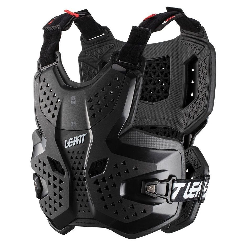 Pare pierre Leatt 3.5 – BLACK 2023: Présentation: LEATT vous propose son plastron CHEST PROTECTOR 3.5 – BLACK : Matière: Coque dure très légère et mousse 3DF AirFit ventilée à impact doux Poids plume de 750gProtections: Homologué EN1621 Niveau 1Les « + »: Compatible avec et sans une minerve Leatt Conception 3D assure un ajustement parfait et très confortable Fentes d’aération pour une circulation d’air maximale Plaques avant et arrière amovibles Système d’ajustement de serre-nuque BraceOn ? permettent de superposer le sous-vêtement Leatt®