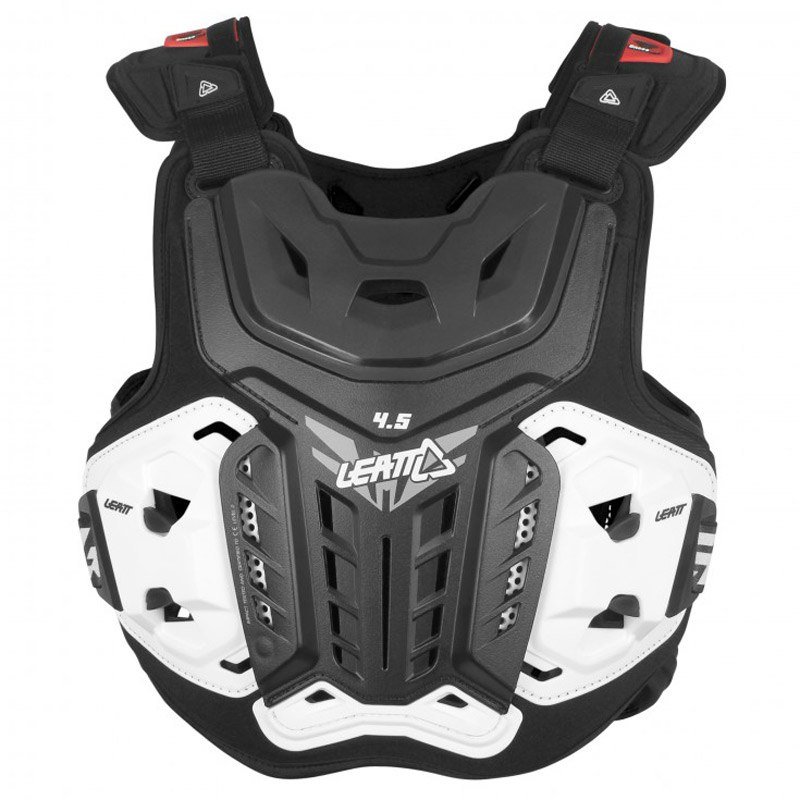 LEATT vous présente son pare-pierres tout terrain 4.5 :Matière :Coque extérieure Hardshell en polyéthylène haute densité protégeant des impactsPare-pierres composé de coques en composite dure et du système 3DF (mousse multicouches qui se durcit instantanément à l’impact et absorbe le choc)Protections :EN1621-2 niveau 2 pour la protection dorsaleEN1621-3 niveau 2 pour la protection thoraciqueLes « + » :33 canaux de ventilation assurent une respirabilité maximaleSe porte indifféremment au-dessus ou en-dessous du maillotTailles :S-XL pour les pilotes pesant de 54 à 90 Kg2XL pour les pilotes pesant de 90 à 130 KgPoids :1450g