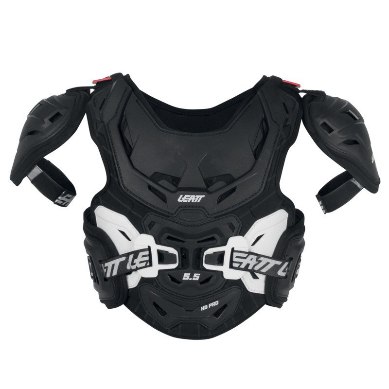 Pare pierre Leatt 5.5 PRO HD JUNIOR: Présentation: LEATT vous présente son Pare Pierre 5.5PRO HD JUNIOR :Matière: Coque extérieure Hardshell en polyéthylène haute densité protégeant des impacts Mousses 3DF Airfit qui est une mousse multicouches qui se durcit instantanément à l’impact et absorbe le choc Architecture multi-feuilles à densités variables, plus légèreProtections: EN1621-2 niveau 1 pour la protection dorsale EN1621-3 niveau 2 pour la protection thoracique EN1621-1 pour les protections d’épaules Protections des flancs en mousse multicouche intégrées Protections de bras amovibleséquipements: Sangles de réglage au niveau des épaules pour un ajustement parfait 36 canaux de ventilation assurent une respirabilité maximale Se porte indifféremment au-dessus ou en-dessous du maillotTaille: Unique pour les pilotes junior de 1m34 à 1m59Poids: 950g