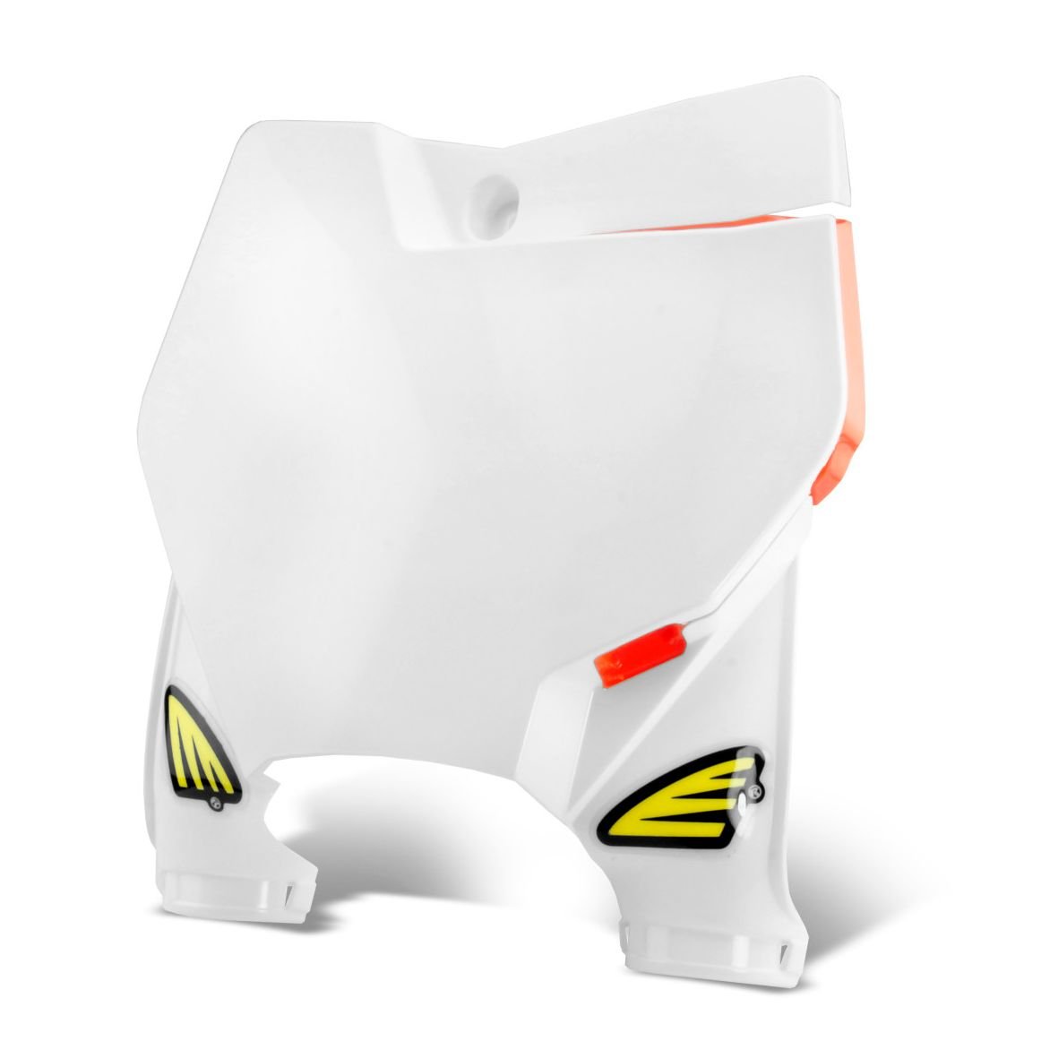 Plaque numéro frontale Cycra.Fabrication haut de gamme avec plastique injecté.Ultra fine et légère, compatible avec les tés de fourche d’origine et autres tés adaptables.Compatible avec les fonds de plaque du marché.Guide câble et colliers inclus.