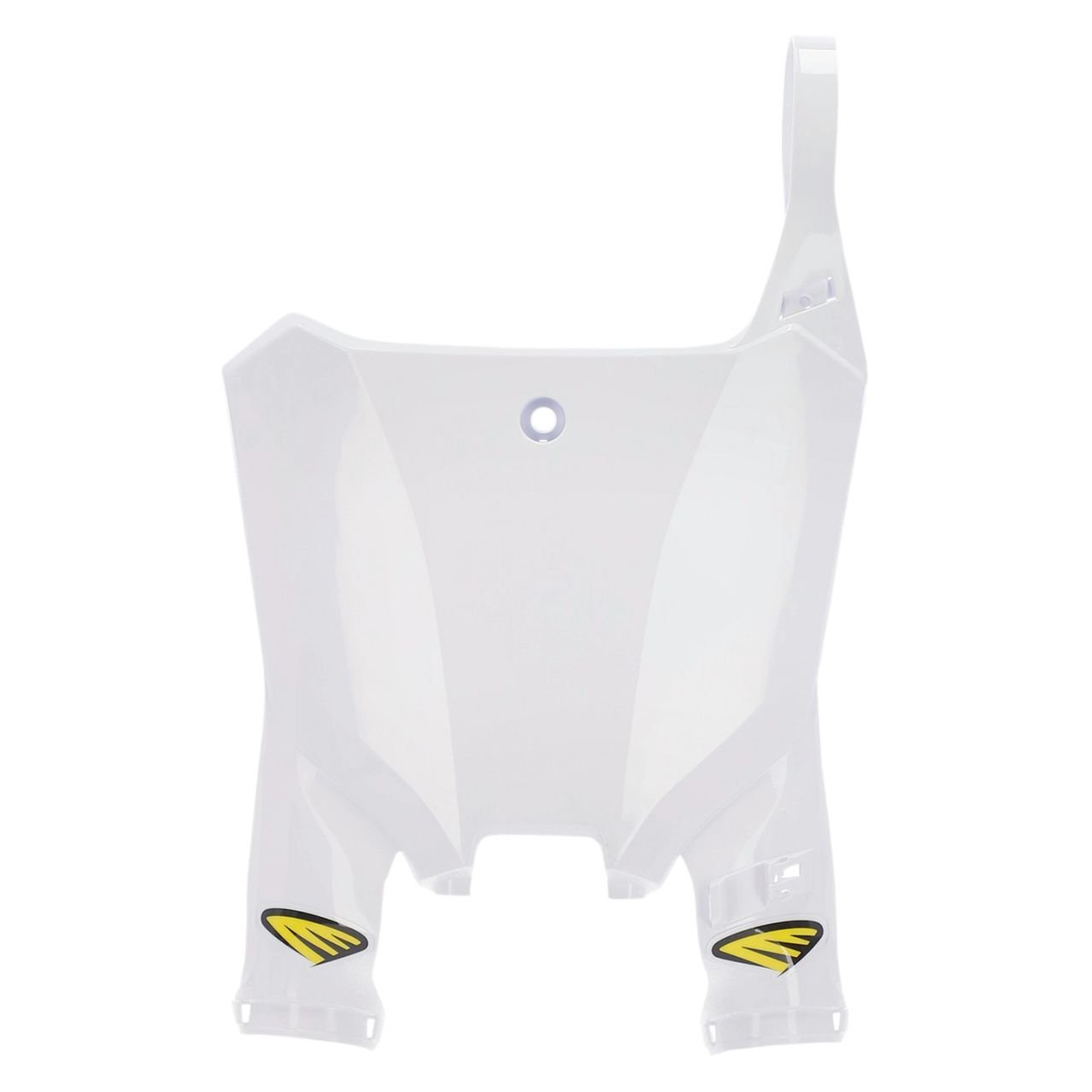 Plaque numéro frontale Cycra.Fabrication haut de gamme avec plastique injecté.Ultra fine et légère, compatible avec les tés de fourche d’origine et autres tés adaptables.Compatible avec les fonds de plaque du marché.Guide câble et colliers inclus.