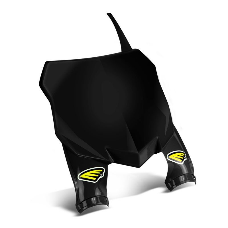 Plaque numéro frontale Cycra.Fabrication haut de gamme avec plastique injecté.Ultra fine et légère, compatible avec les tés de fourche d’origine et autres tés adaptables.Compatible avec les fonds de plaque du marché.Guide câble et colliers inclus.