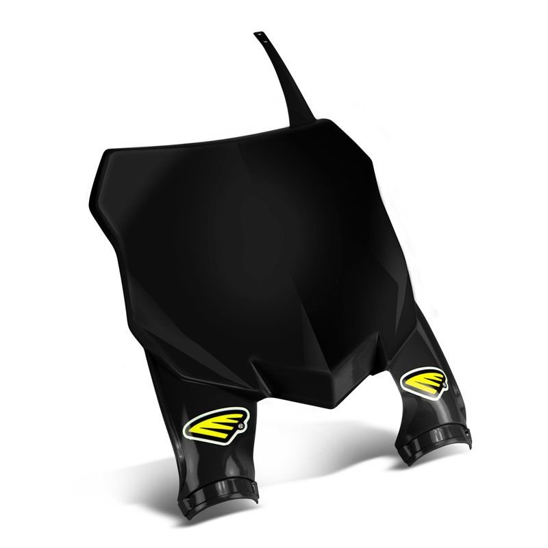 Plaque numéro frontale Cycra.Fabrication haut de gamme avec plastique injecté.Ultra fine et légère, compatible avec les tés de fourche d’origine et autres tés adaptables.Compatible avec les fonds de plaque du marché.Guide câble et colliers inclus.