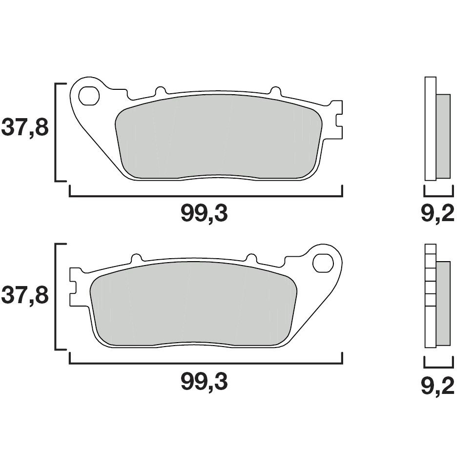 Plaquettes de frein Brembo de type « Sinter » (Métal fritté). Spécialement développées pour les plaquettes de frein arrière Elles sont caractérisées par une efficacité en toutes conditions d’utilisation Bonnes performances à froid comme à chaud Bonne longévité garantie notamment en terme de distances parcourues Excellente alternative aux plaquettes de frein d’origine Le matériau « Sinter » est du métal fritté, c’est une composition de poudres métalliques additionnées de lubrifiants et d’abrasifs. Les poudres métalliques déterminent l’efficacité de freinage, les lubrifiants participent à la stabilité du freinage et les abrasifs maintiennent la propreté des disques Brembo, Leader Mondial des systèmes de freinage propose une gamme de plaquettes de freinhautes qualités expressément développé pour un maximum de sécurité et de performances.