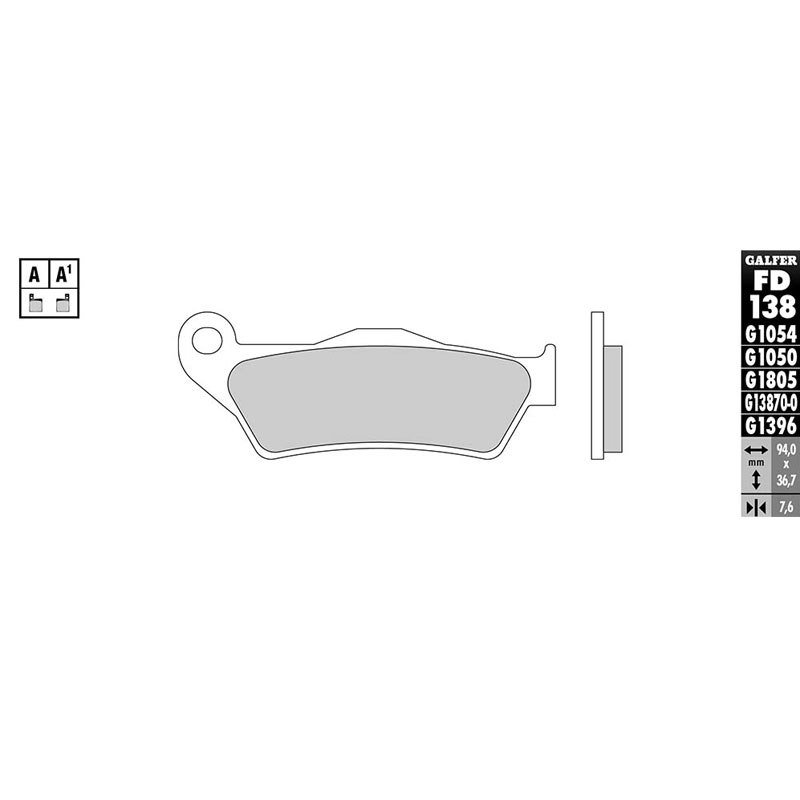 Galfer vous présente les plaquettes de frein moto de type « Sinter » (Métal fritté). Les plaquettes de frein sont un élément fondamental pour le système de freinage; elles sont directement responsables de transmettre la force de l’étrier au disque de frein, et donc elles sont soumises à de gros efforts. Galfer a développé des composants spécifiques pour chaque usage et type de motos, en cherchant à offrir les prestations maximales dans tous types de conduite et pour tous les profits et besoins des usages. Caractéristiques principales: Freinage puissante, réglable et progressif. Faible taux d’usure et bruits minimes. Résistance maximale a l’effet « fade ». Très efficace sur sec et mouillé. Faible agressivité sur le disque de frein. Certificat TÜV (KBA n° 60811 / 61197) Composé SEMI METAL améliorée. Photo non contractuelle