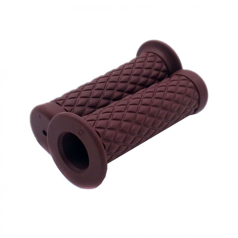 Brazoline vous présente sa paire de poignées Vintage Losange:Poignée en caoutchouc stylé vintagePour guidon diamètre: 22 mmLongueur: 125 mmMotifs en petits losanges en surépaisseurExtra confort et très résistantes