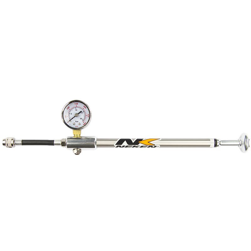 Pompe haute pression pour tés de fourche Neken:Facile à utiliserMatière: aluminiumMesure jusque 20 barsBouton pour ajuster la pression d’airLongueur totale: 300mm