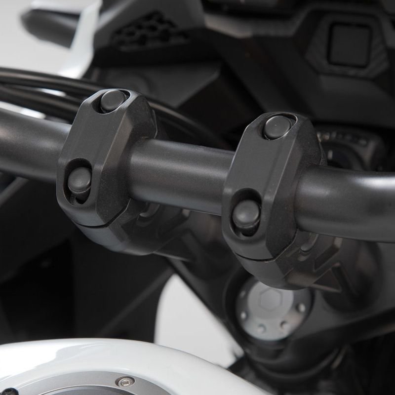 Fabriqué en alliage d’aluminium de haute qualité, le rehausseur de guidon relève le guidon de 20 mm et assure un confort de conduite sensiblement accru. Le rehausseur de guidon stable et résistant aux intempéries s’adapte aux guidons d’un diamètre de 28 mm.Rehaussement du guidon de 30 mmUne homologation de circulation (ABE) spécifique au modèle pour une utilisation dans le trafic allemand est disponible pour de nombreux modèles de motosPour une position assise plus détendueRemplace le pontet de guidon originalPour guidon de 28 mm de diamètre avec un écart d’alésage de 37 à 46 mmInclus:2 x Réhausseur de guidon de 28 mm de diamètre2 x pinces de guidonNotice d’installationMatériel de montageCaractéristiques:Matériaux : AluminiumSurface : époxyPoids : 0,5 kg