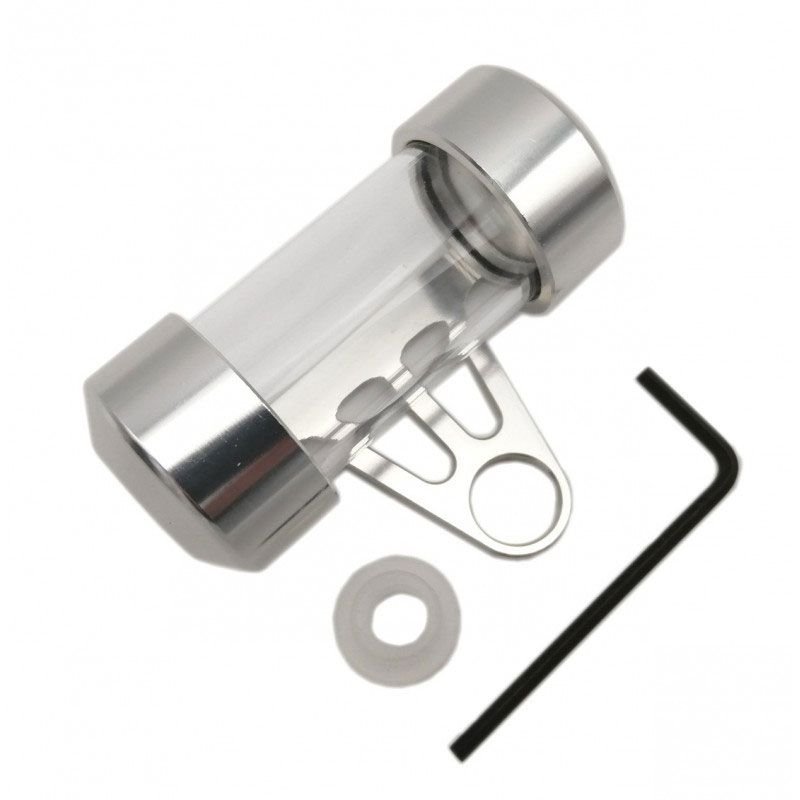Brazoline vous présente son porte vignette cylindrique en aluminium Argent usiné CNCLivré avec un clé Allen + bague téflon de montage universelleLongueur hors tout: 72 mmLargeur de la partie vitrée: 40 mmDiam. vitre: 25 mmÉtanche