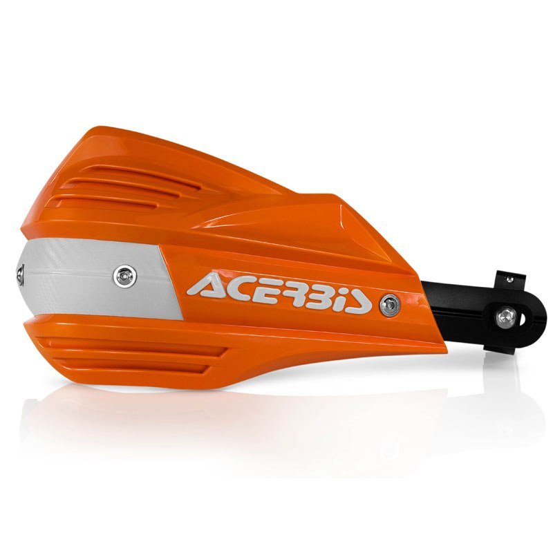 Acerbis vous présente les protège mains « X-FACTOR » Les nouveaux protège-mains Acerbis X-FACTOR sont le meilleur choix pour les pilotes recherchant un maximum de protection.La conception particulière de la barre de renfort et les deux bracelets de 19 mm (au lieu de 15 mm habituellement) offrent une résistance jusqu’à 5 fois supérieure aux protège-mains classiques !Protège-mains pour un usage intensif en enduro et maxi-enduroFixation double points avec bracelets de 19 mm d’épaisseurKit de fixation universel inclus : convient aux guidons alu de de diamètre interne 13,5 à 16 mm, diamètre externe 22 mm et guidons Fatbar/Twinwall de diamètre externe 28 mm.Events d’aération pré-percés sur les pare-mains10 coloris au choix dont orange KTM 2016