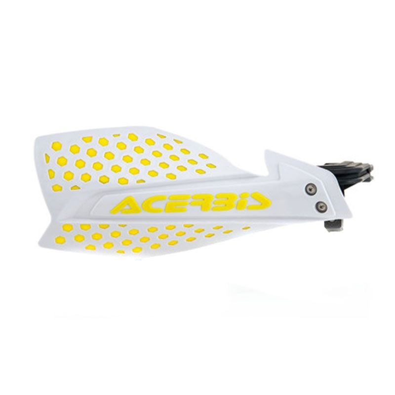 Protèges-mains Acerbis X-Ultimate: Présentation: Acerbis vous présente les protèges mains X-ultimate MATÉRIAUX :Coque frontale: 60 % polypropylène, 5% autres.Bracelet35% polyamide Détails: Protège-mains ouvert Tige de montage en nylon Spoiler supérieur et inférieur amovibles pour ventilation maximum Fixation universelle Réglable horizontalement Kit de montage inclus pour guidons diamètre externe de 22 à 28 mm et twinwall