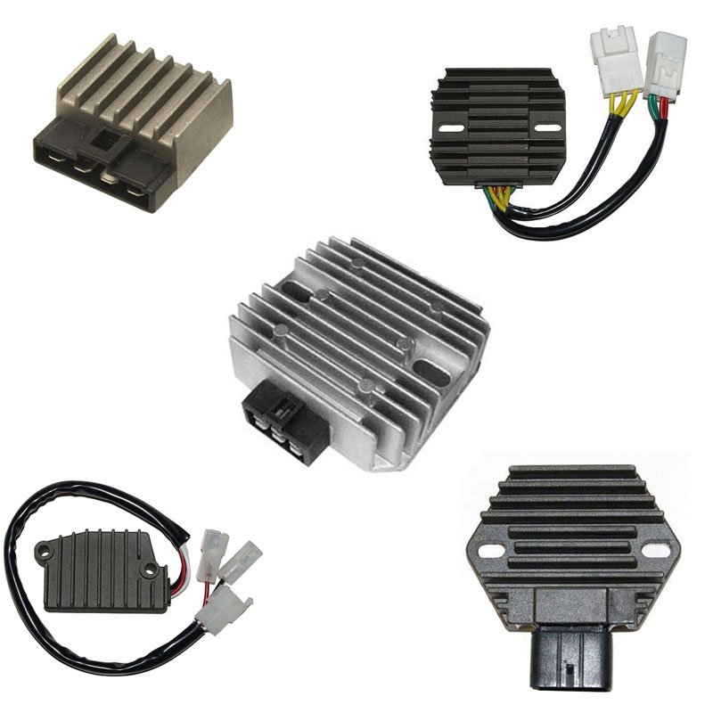 Régulateur de tension: cette pièce sert à transformer le courant alternatif de la sortie moteur en courant continu afin d’alimenter le circuit électrique de la moto et recharger votre batterie. Ce régulateur de tension est spécifique à chaque moto.