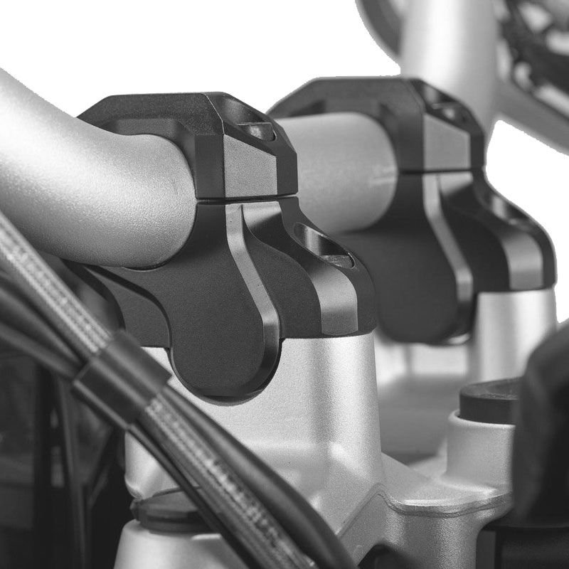 Kit Rehausse guidon SW-MOTECH pour BMW R 1200 GS LC (13-), R 1200 GS Adventure (13-), R 1200 GS Rallye (16-) et R 1250 GS (18-)Rehausse de 32 mmAméliore la position de conduiteUsinage CNC, à base d?aluminium très résistant Aluminium brosséInclus:2 Réhausses guidons2 fixations de guidonMatériel de montageNotice de montageCaractéristiques:S’adapte à la longueur des câbles d?origine
