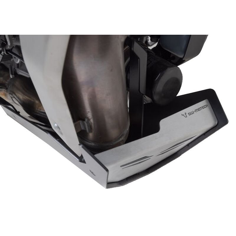 SW-MOTECH vous présente le sabot moteur en aluminium: Le sabot moteur urbain SW-MOTECH, adapté au design de la moto, offre une protection fiable contre les chutes de pierres et les contacts accidentels avec le sol. Le revêtement époxy de la surface est extrêmement résistant et protège en permanence contre la corrosion. La protection de soubassement extrêmement stable peut être facilement fixée aux points de fixation d’origine à l’aide des attaches en acier personnalisées fournies, sans perçage ni soudage.Protection du soubassement contre les jets de pierre et les collisionsMontage résistant et simple aux points d’ancrage d’origineFixation sans perçage ni soudageSurface époxyInclus1 x Sabot moteur urbainNotice d’installationMatériel de montageDétailsMatériaux : aluminium / aluminiumSurface : époxy / époxyCouleur : noir / argentPoids total : ca. 2,0 kg