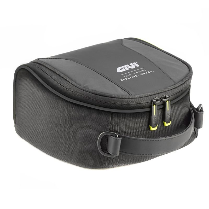 Sacoche réservoir Givi EA144B système Tanklock (5 litres): Matériaux: Polyester 600D et Polyester laminé PU. Inserts réfléchissants en Pu et jaune fluo Matériau réfléchissant noir mat Tous les matériaux sont développés en fonction de la norme REACH.Caractéristiques: Volume: 5 litres Système tanklock (bride spécifique à chaque moto et vendu séparément) Housse de pluie jaune fluo Sangle d?épaule réglable pour le transport Poignée de transport Impressions et inserts réfléchissants Dimension: H: 10 cm; L: 26 cm; P: 20 cm