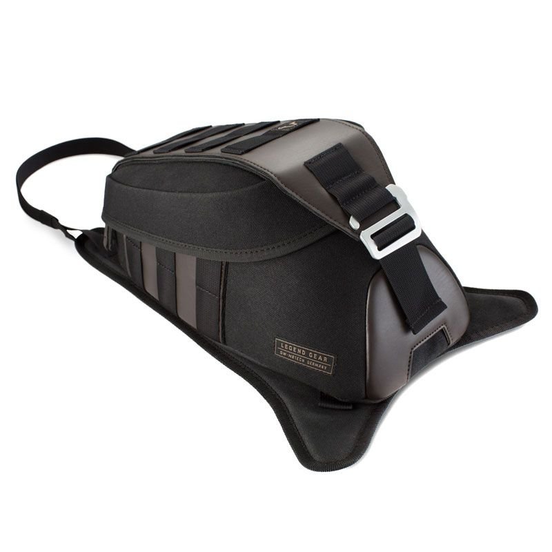 SW MOTECH vous présente la sacoche de réservoir LT2 Legend Gear:La sacoche de réservoir LT2 au look vintage bénéficie dune fixation à sangles la rendant universelle. Deux clips de fixation permettent d?accéder rapidement à la trappe à essence.Le couvercle positionné sur le dessus de la sacoche assure une protection contre l?humidité et la saletéOrifice pour câble sur lavant de la sacocheSolide poignée de manipulationProtection anti-pluie grâce à ses matériaux résistant aux projection d’eau et sa housse de pluie étancheUn système de fixation militaire M.O.L.L.E (Modular Lightweight Loadcarrying Equipment) permet d?installer les pochettes accessoires Legend Gear LA1/LA2 ainsi que la pochette pour smartphone LA3 (voir Accessoires, vendu séparément)Matériau: Cuir synthétique Napalon et toile cirée canevas, avec une doublure en polyuréthane. Housse de protection contre la pluie en polyamide 210D, avec une doublure en polyuréthane et une fenêtre transparente en PVC (épaisseur 0,2mm)Dimensions: 15 x 18 x 30 cm (L/H/P)Volume: 5,5 lInclus: 1 sacoche de réservoir Legend Gear LT21 housse de pluie2 sangles de fixationAccessoires:Pochette accessoires LA1/LA2Pochette pour smartphone LA3Bandoulière LA4Important: pour protéger les fibres naturelles des intempéries, nous recommandons dŽentretenir régulièrement la surface en toile cirée.Indication: Également disponible, la sacoche de réservoir LT1 à aimants.