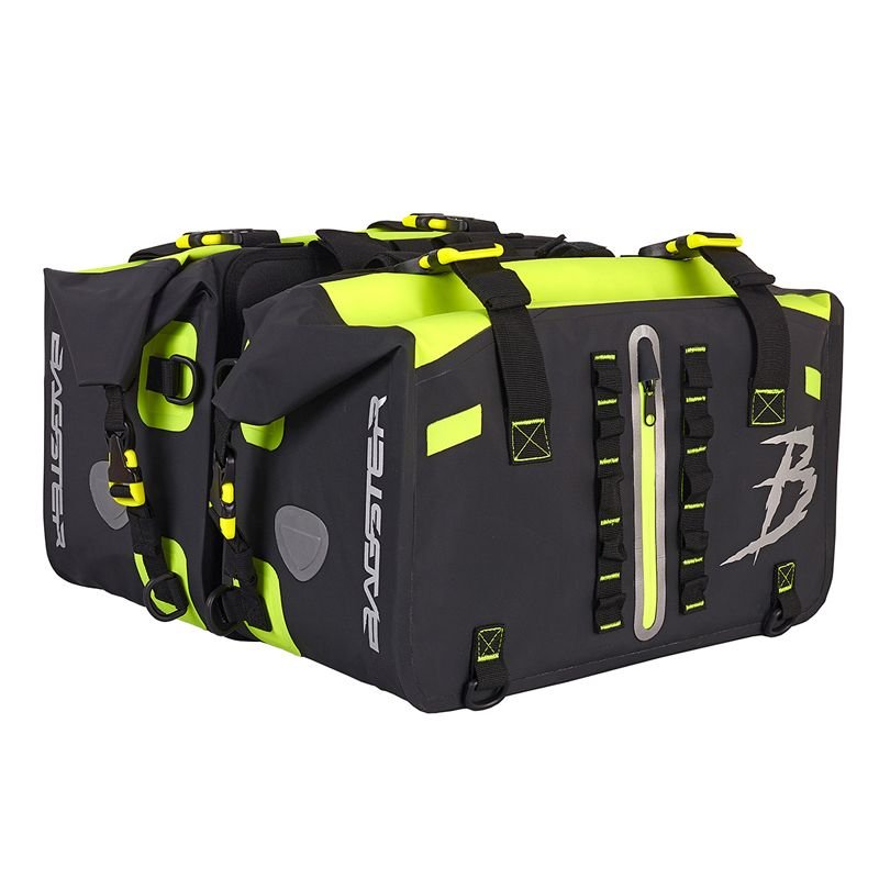 Bagster vous présente les sacoches cavalières Hawk, elles sont étudiées et construites pour faire face à toutes les conditions climatiques et vous assurer un transport de vos affaires au sec.Fiche technique:Volume : 25/30 L par sacocheFormat : 45 x 22 x 26 cmPoche avantMatériaux : PVC thermo-soudéCompatible avec le Kit thermiqueCouleur: noir /jaune fluoVendu par paire