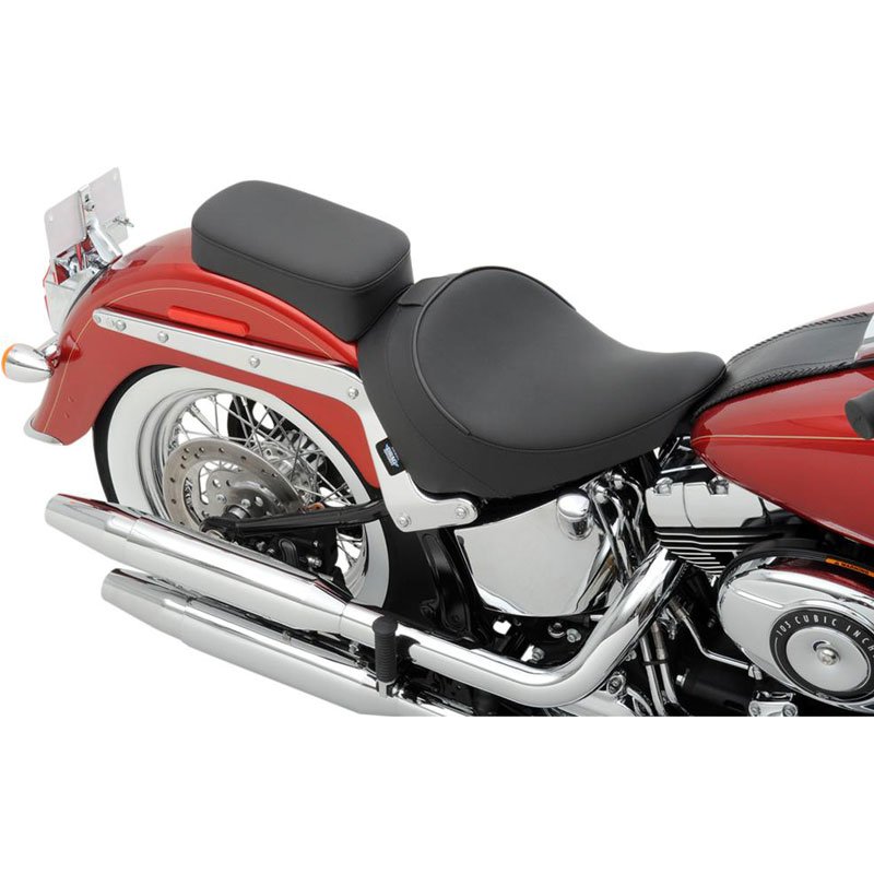 Drag Specialties vous présente la selle confort solo avec option dosseret:Cuir anti-UV réfléchissant et vinyle de qualité sur les côtés; procédé breveté réduit la température de la surface de près de 14°c pour un siège plus frais, plus de durabilité par rapport à du cuir ou de vinyle classique.Intérieur en mousse d’uréthane souple moulé pour un maximum de confort, coque ABS thermoformé de base pour un ajustement parfaitFond tapissé renforcé en caoutchouc pour protéger la peintureStyle et forme améliorée pour plus de confortUn dossier Ez Glide peut être utilisé dans la position pilote emplacement prévu (dossier vendu séparément)Les systèmes Ez Glide interne pour dosseret disposent de non contact métal-métal avec les barres du dossier ; les barres suspendues sont solidement en place en utilisant des composites synthétiques qui éliminent pratiquement corrosion et l’usureLe siège dispose d’une vis de blocage pour une sécurité supplémentaire sur la position des dosseretsKit de montage inclusFabriqué aux Etats-Unis