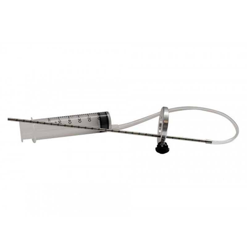 Seringue 60ml d’Atelier (pour niveau d’huile fourche)Outil indispensable lors du remplacement de l’huile de fourche!Une bague réglable va vous faciliter votre travail !55cm environ de Durit+tuyau rigide.Vendu à l’unité.