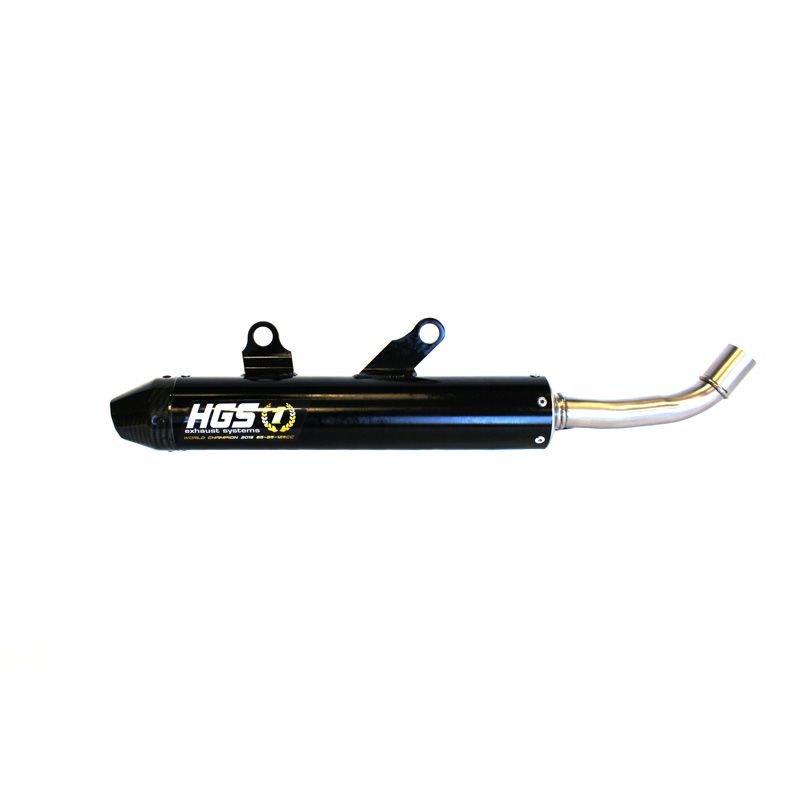 Silencieux 2 Temps HGSCouleur noir HGS est une marque utilisée par les plus grands pilotes pour leur puissance supérieure dans n’importe quelles conditions d’utilisation.Gain de puissance élevé.Silencieux fabriqué en aluminium.Assemblement de la plus haute qualité avec une finition irréprochable.Pour un meilleur résultat utiliser le corps d’echappement HGS.