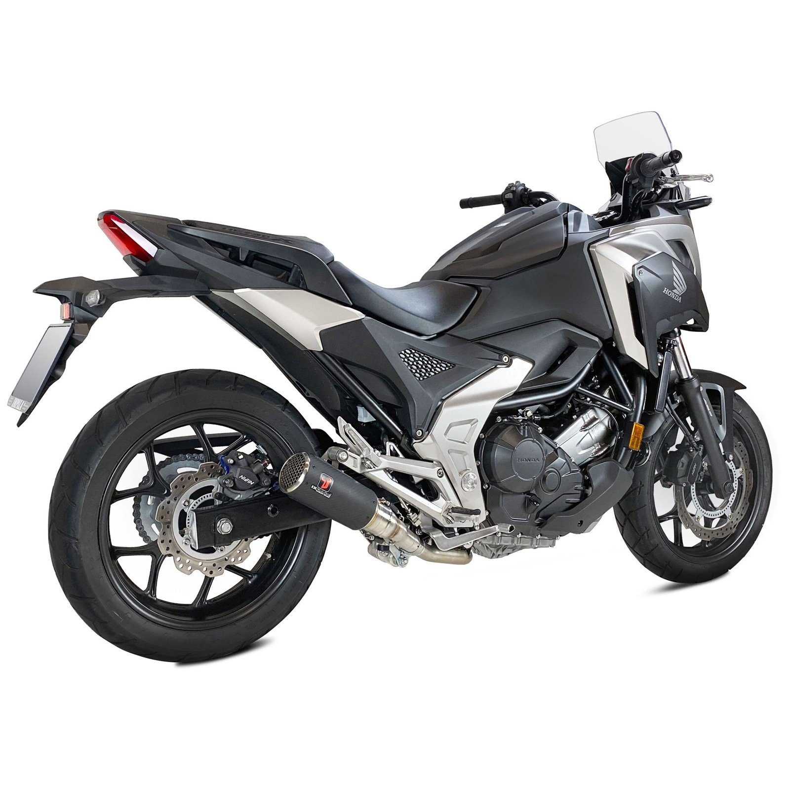 Silencieux DC1Finition satiné matMatière : carbone forged avec résine haute températureGrille de silencieux en acier inoxydable style « Moto GP »Fabriqué en carbone traité époxyPoids réduit et sonorité puissante (0.84 kg)Homologué ECE EURO 5Longueur: 240 cmFixation par 2 ressorts en acier inoxydable Gain de poids important