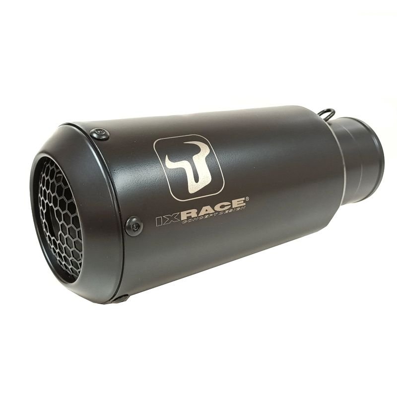 Silencieux MK2 conique INOX AISI304Collecteur en INOX AISI304Silencieux non homologué Soudures haute qualité T.I.GLaquage noir mat haute température ou en inoxGravage laserMontage ressortsEmbout d’échappement en acier inoxydable style « Moto GP » avec système AFS (Anti flame System)Rivets en acier inoxydableDimensions de l’échappement :Échappement coniqueLongueur totale : 19 cmDiamètre extérieur de sortie : 10 cmDiamètre d’entrée : 6 cmDiamètre de sortie de gaz : 5 cmPoids : 900 grammesLe silencieux MK2 IXRace moto est spécifique à chaque moto.Attention: Si vous n?utilisez pas l?outil et les ressorts inclus dans le kit de montage, vous tordez obligatoirement les ressorts et ils cassent.