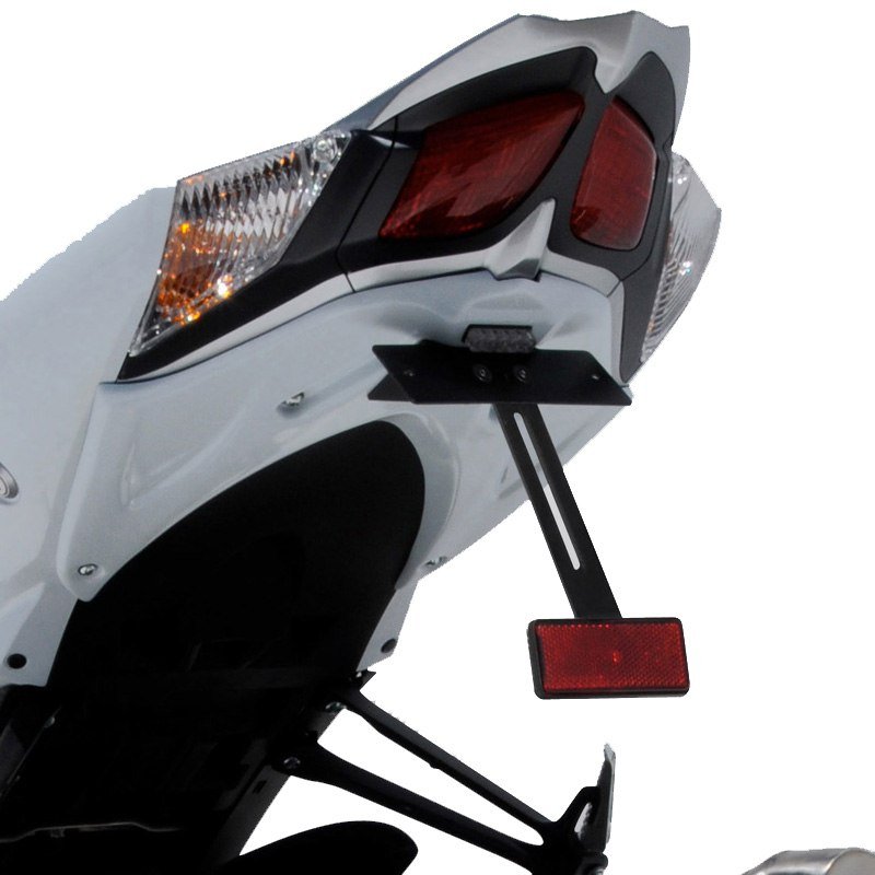 Support de plaque en ABS thermoforméLivré prêt à monter Vis de fixation, notice de montageÉclairage de plaque à 5 LED E9Mini support de plaque alu noirSupport de catadioptre alu noir Aucune garantie pour l’exactitude de l’image ou de la description de produit..Avertissement concernant l’utilisation et le montage des pièces: Passage de roue et/ou support de plaqueAfin de respecter les normes de sécurité routière, il est indispensable d’observer les règles de montage des dispositifs d’éclairage, de signalisation lumineuse, et de la plaque d’immatriculation décrites dans les directives européennes 2009/67/CE et 2009/62/CE.Il est conseillé de vérifier l’inclinaison de la plaque minéralogique avant le montage, et si nécessaire, de plier le support plaque métallique de manière à conserver une inclinaison dans les normes (ne pas plier le support métallique quand il est inséré dans la pièce en ABS) (pièce fournie avec certains passages de roue et supports de plaques).Nous vous rappelons que la loi française impose la présence d’un catadioptre homologué à l’arrière de tous les véhicules deux roues.