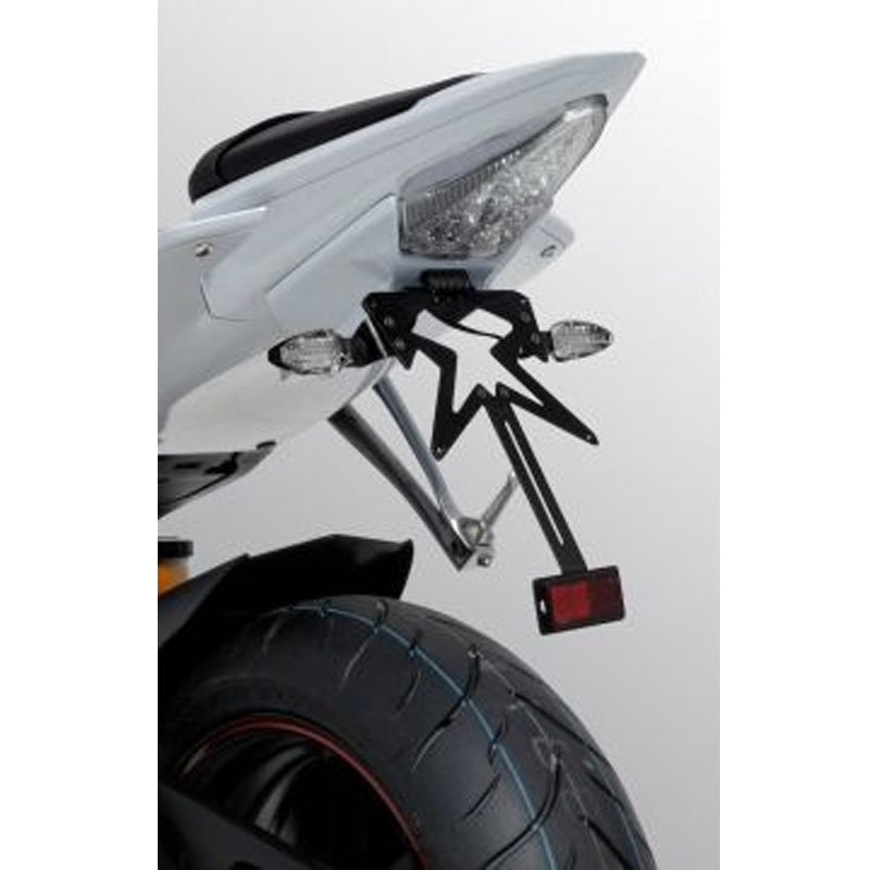 Support de plaque en ABS thermoforméLivré prêt à monterVis de fixation, notice de montageÉclairage de plaque à LED E9Support de plaque alu noirSupport de catadioptre alu noirClignotants en optionAucune garantie pour l’exactitude de l’image ou de la description de produit..Avertissement concernant l’utilisation et le montage des pièces: Passage de roue et/ou support de plaqueAfin de respecter les normes de sécurité routière, il est indispensable d’observer les règles de montage des dispositifs d’éclairage, de signalisation lumineuse, et de la plaque d’immatriculation décrites dans les directives européennes 2009/67/CE et 2009/62/CE.Il est conseillé de vérifier l’inclinaison de la plaque minéralogique avant le montage, et si nécessaire, de plier le support plaque métallique de manière à conserver une inclinaison dans les normes (ne pas plier le support métallique quand il est inséré dans la pièce en ABS) (pièce fournie avec certains passages de roue et supports de plaques).Nous vous rappelons que la loi française impose la présence d’un catadioptre homologué à l’arrière de tous les véhicules deux roues.
